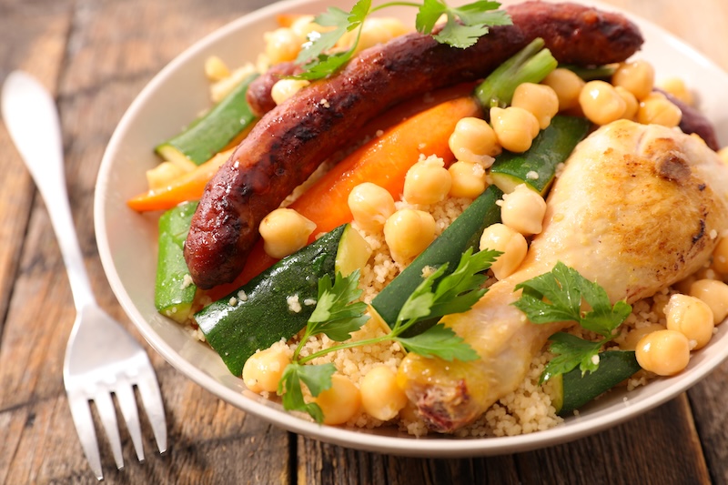 Préparé avec soin, dans la plus pure tradition des cuisines du monde, le couscous marie épices parfumées, viandes mijotées, et semoule légère.